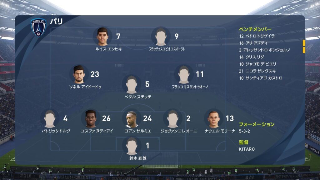 開幕戦で見事パリSGを下した『パリダービー』。今季2度目の試合が始まります。今節はより守備重視の5バックで挑みます。攻撃陣は中盤3枚、2トップの形ですが、ここに関してはピオ・エスポージト以外は流動的に動くシステムになっています。開幕戦の勝利を単なる”ビギナーズラック”ではないことを証明しなければなりません。