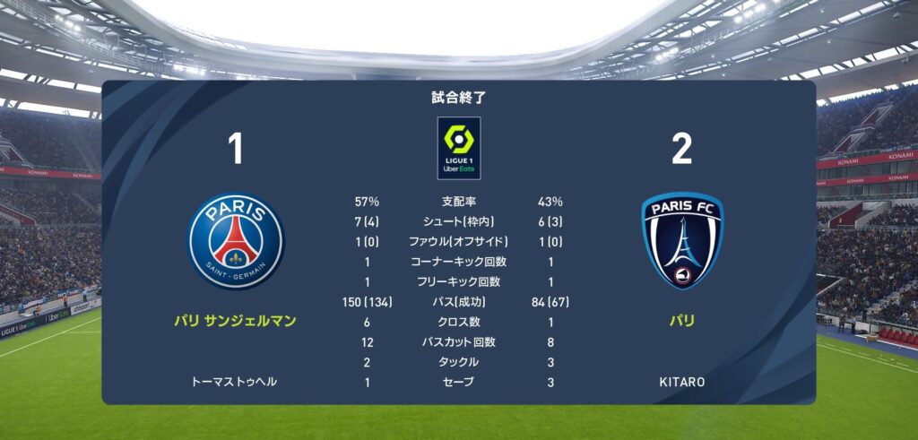 シーズンダブル達成!!!世界一の格差ダービー『パリダービー』にて再度パリFCが金星を挙げました。開始2分に電光石火の如く始まったパリSGの攻撃、最後はドラクスラーがネットをを揺らし瞬く間にスコアが動きました。パリSGのスタメンを見ても分かる通り迷うところはディマリアかサンチョか位でほぼベストメンバーです。そして早々の失点、これはハードな試合になりそうだと直感しました。しかし予想に反して試合は膠着状態、と言うよりパリFCの善戦が目立ちました。すると32分にトルコの若き”テクニシャン”ソネルの同点ゴールが飛び出しスコアは1-1に。この得点が完全に流れがパリFCに傾いたと思います。後半に入ってもパリFCの優勢は変わらず、50分には遂に逆転ゴールがエンリケの右足から生まれました。その後もチャンスを作っていたのはパリFC。パリSGの代わって入る選手も脅威とはならず2-1のスコアで2度目の下克上を成し遂げました。