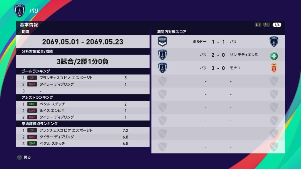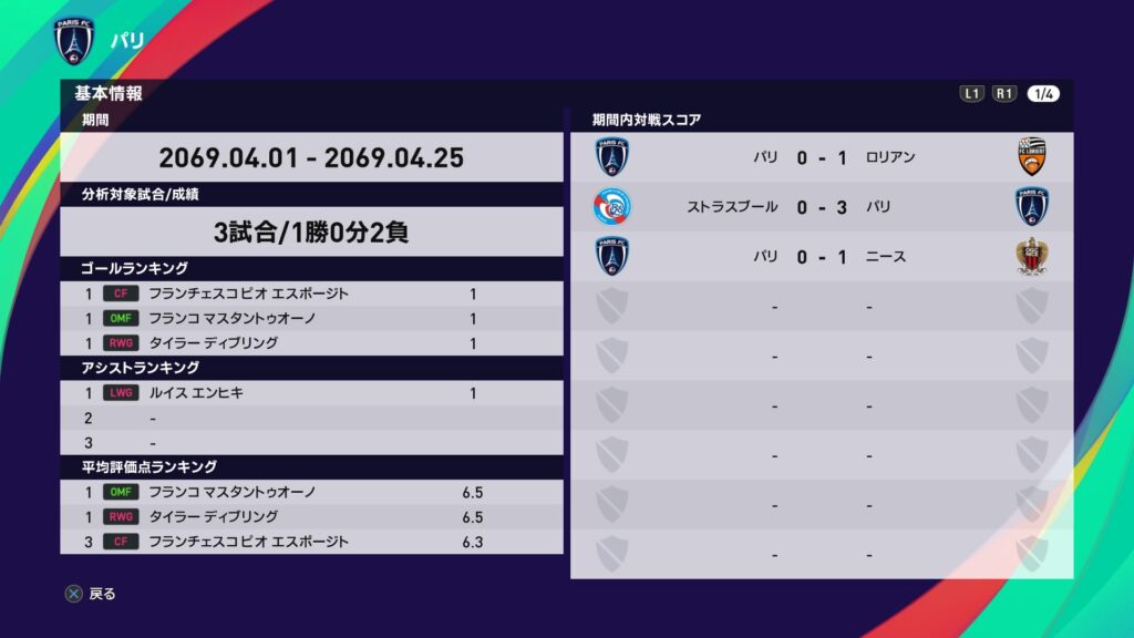 シーズンも佳境に入る4月では3戦1勝2敗の成績に終わりました。パリSGが余裕の独走優勝を決め、2位パリFCは何とも体たらくな戦いです。残り3試合、2位を死守すべく全身全霊で挑みます。