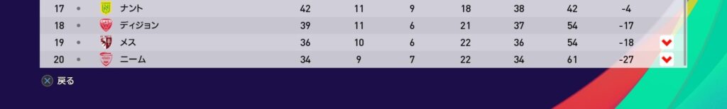 League1 順位表