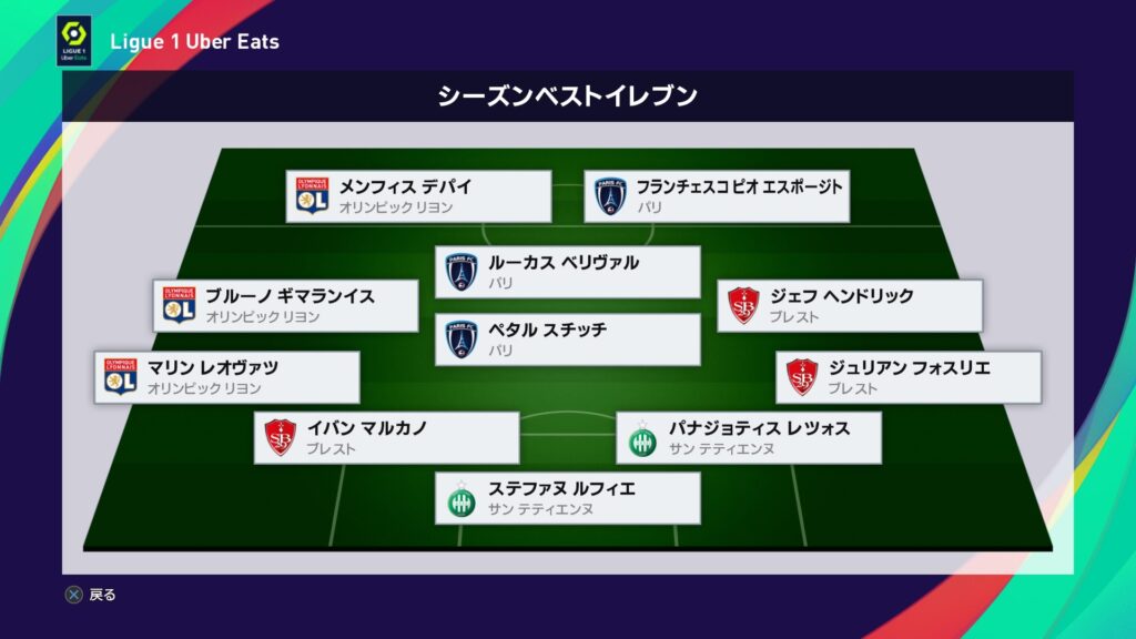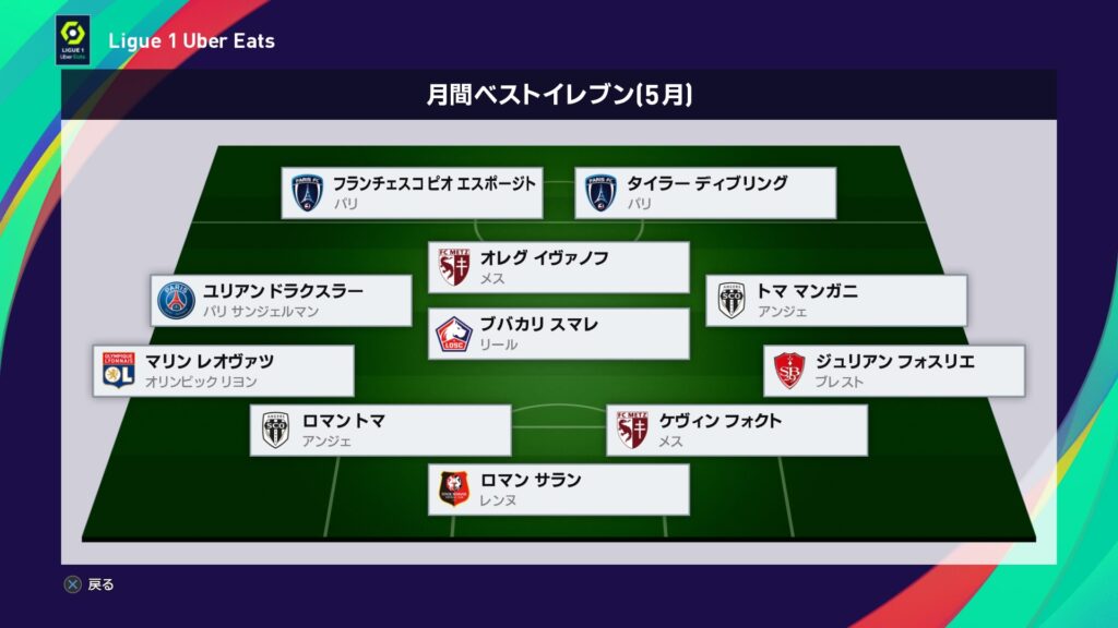 珍事はまだまだ続きます。シーズンベスト11にまさかのパリSGから選出ナシ。2位パリFCから3人、3位リヨンから3人、5位サンテティエンヌから2人、7位ブレストから3人という驚くべき人選でした。