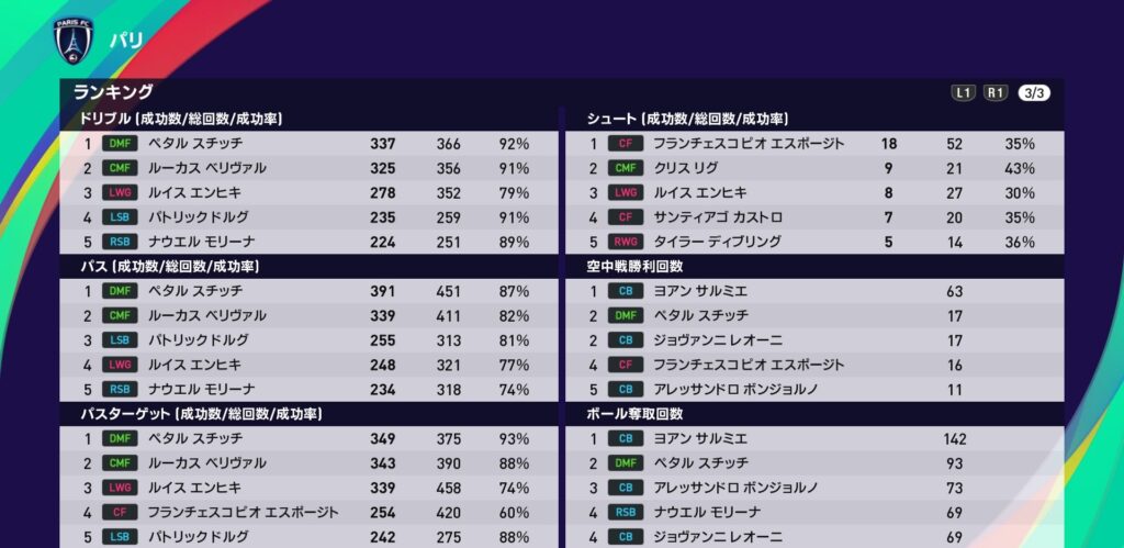パリFCは前回順位266位から148位に大幅アップに成功しました。リーグ2位フィニッシュが大きく反映されたのでしょう。