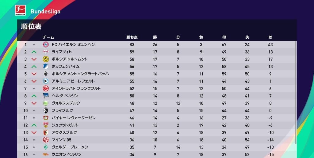 バイエルンがリーグ10連覇達成です。15年前まではドルトムントに覇権を明け渡していた時期もありましたが、再び王朝を取り戻し盤石な地盤を固めています。これはちょっとやそっとじゃ崩れそうにありません。