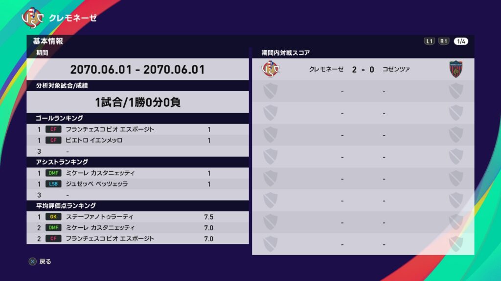 経営陣:「KITARO、クラブをセリエA昇格へ導いてくれたことは称賛すべき功績だ。欲を言えばセリエB制覇が理想だったがな…。」