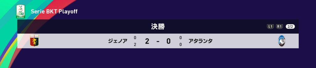 昇格の最後の枠を懸けたプレーオフでは3位アタランタと5位ジェノアの決勝戦が行われ、結果は5位ジェノアが2-0で破り下克上昇格を決めます。これは現戦力を考えても波乱の結果と言わざるを得ないでしょう。