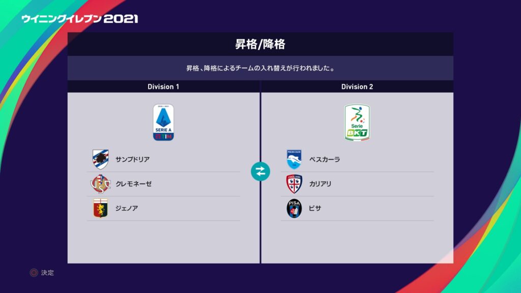 経営陣:「君の手腕はこんなものじゃないはずだ。来シーズン、クレモネーゼをセリエAの舞台に轟かせよう。」