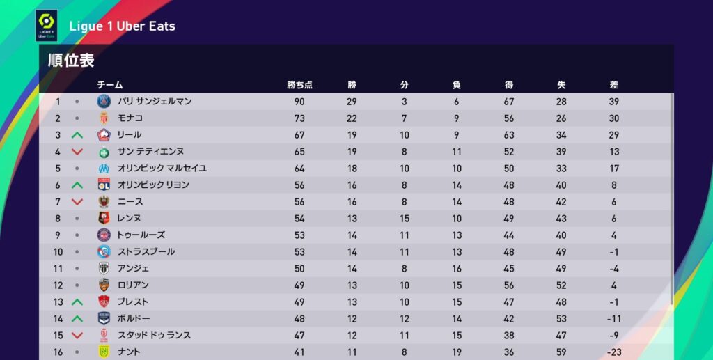 パリSGがリーグ11連覇、通算41度目の優勝を飾りました。ML50シーズン中41回の優勝とはまさに1強リーグの象徴です。昨季リーグ2位にまで登りつめたパリFCは今季19位に沈み僅か2シーズンで降格となってしまいました。