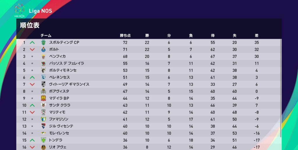 スポルティングCPが2年ぶり9度目の優勝です。最終節までポルトとの優勝争いを演じ見事逆転優勝を成し遂げました。ポルトは16年ぶりの優勝を目前まで来て逃したショックは計り知れないでしょう…。
