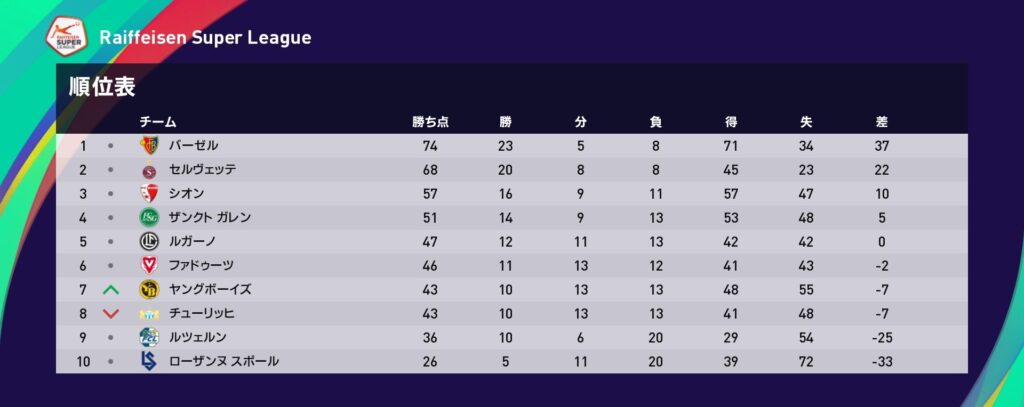 バイエルンがリーグ13連覇、通算25度目の優勝です。向かうところ敵無しの無双状態にある今のバイエルンですが、その宿敵であるドルトムントはと言うと9位に甘んじる不甲斐ない結果に終わっています。リーグ全体の盛り上がりを考えればライプツィヒ辺りがもっと戦力を上げて対抗出来る位にならなければいけませんね。