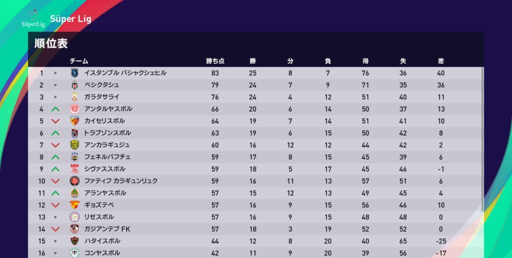 バシャクシェヒルが3年ぶり23度目のリーグ優勝です。今季はかつての圧倒的な攻撃力が戻りその破壊力で優勝まで突き進みました。この勢いで悲願のトルコ勢初のCL制覇を目指します。